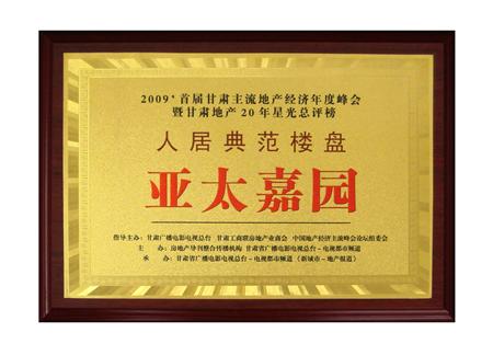 拉斯維加斯游戲3499嘉園榮獲甘肅地產20年“人居典范樓盤”,中國住房與城鄉規劃建設部政策研究中心副主任王玨林先生為獲獎樓盤進行了頒獎。