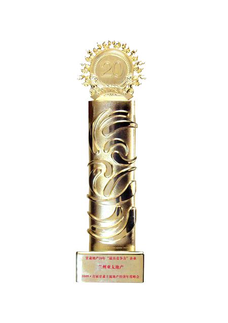 蘭州拉斯維加斯游戲3499地產獲得甘肅地產20年“最具競爭力”企業及甘肅地產20年“人居典范樓盤”獎